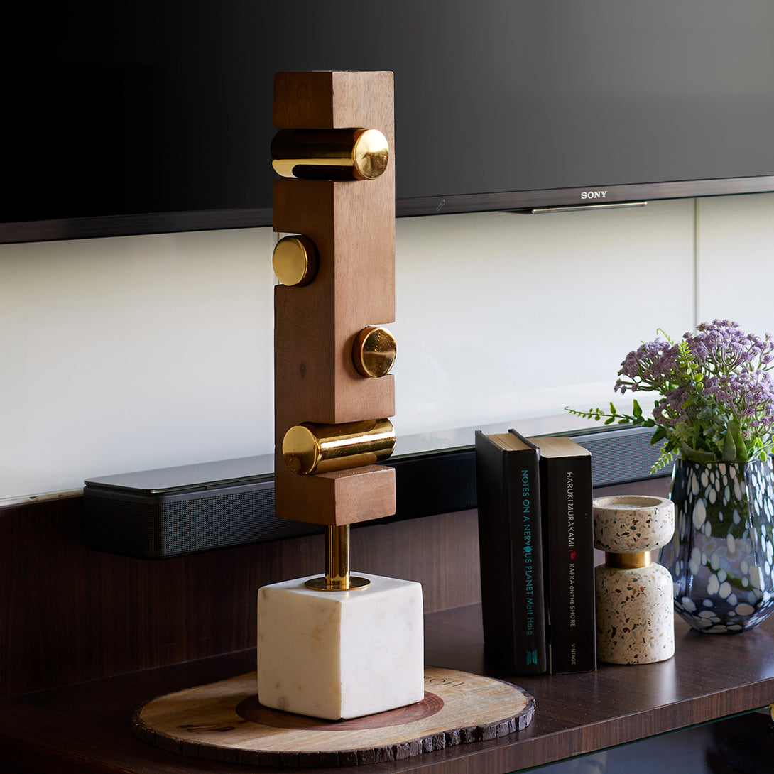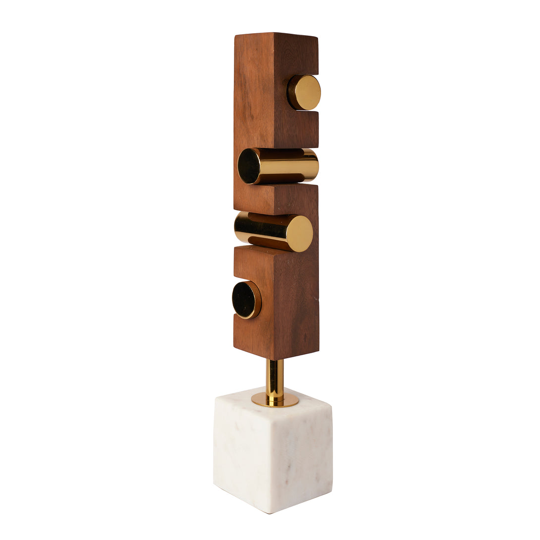 Elevate your space with the striking Modern Geometrics Sculpture, a piece that beautifully blends natural warmth with refined industrial flair. This tall, abstract accent is a study in contrasting materials and shapes, making it a unique focal point for any contemporary home or office.