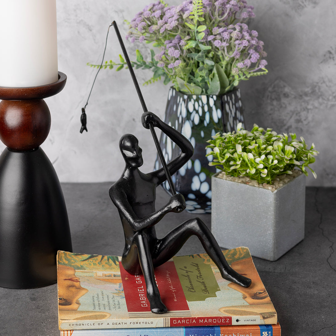 Bring a touch of minimalist serenity and abstract charm to your space with this captivating Abstract Fisherman Sculpture.