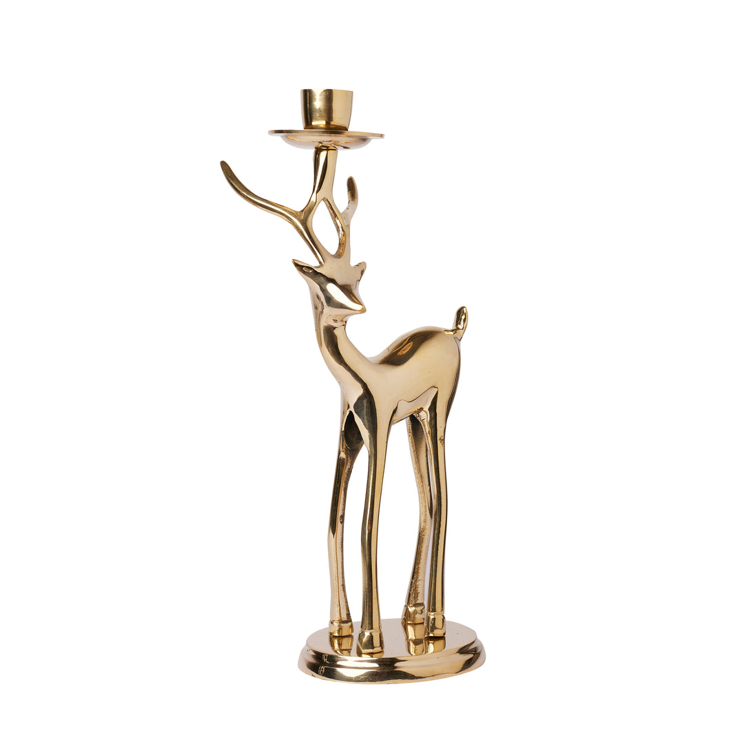 Bring a touch of enchanted forest elegance into your home with this magnificent pair of Gilded Brass Deer Candlestick Holders. More than just vessels for light, these are sculptural works of art that infuse any space with warmth, luxury, and a sense of refined wilderness.